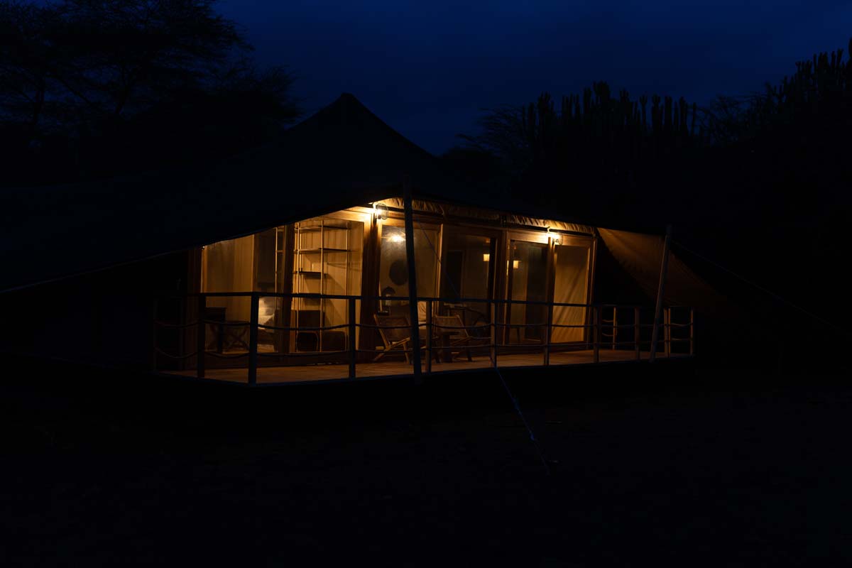 Yes, all tents are equipped with solar-powered electricity, providing lighting, charging points for devices, and essential power while maintaining an eco-friendly safari experience.